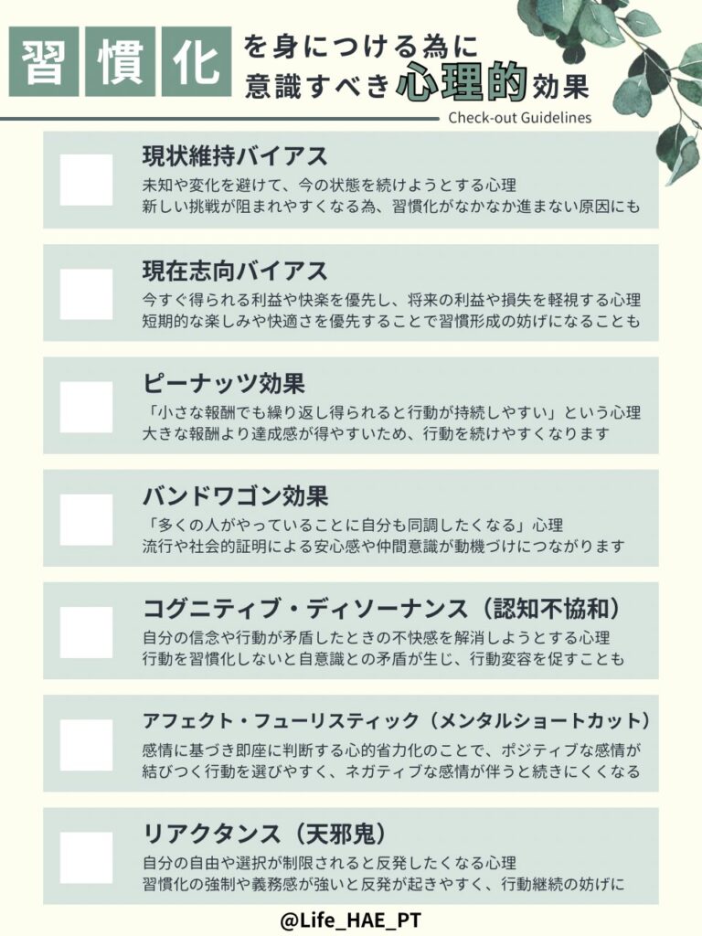 | 現状維持バイアス | 変化を「危険」と判断して避けようとする | 「5分だけ」と脳を騙して始める |