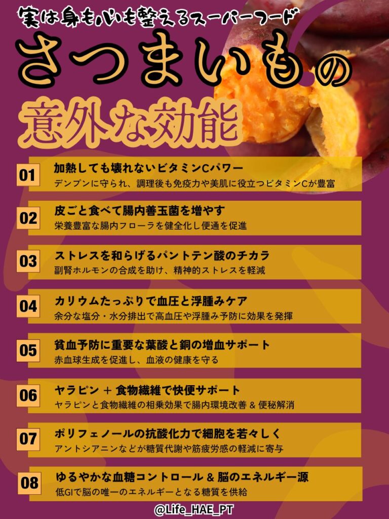 今回は、さつまいもが免疫を“底上げ”する科学的メカニズムを、理学療法士の視点と実体験データに基づいて整理します。
